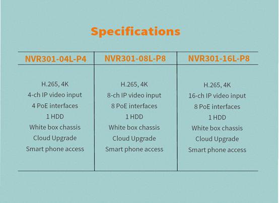 Uniview are going to release new household white box NVR soon, which are named NVR301-L-P series. Featured by 4K&H.265, it can help to upgrade your video surveillance system to higher resolution but lower bandwidth. Its plastic housing with nice white appearance make it more friendly and suitable for shops, homes and so on.