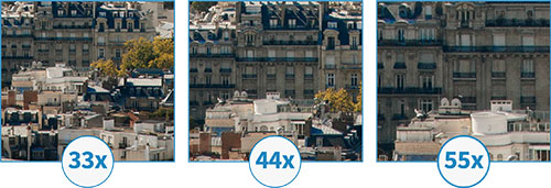 - Up to 55X optical zoom, 300mm+ motorized lens